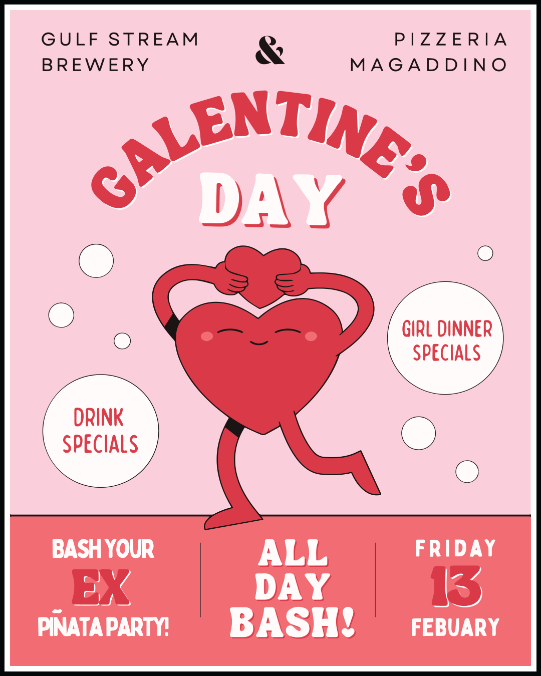 Valentines ... Schmalentines. Grab your besties and join us on February 13th for Galentine's Day! We'll have dinner specials from Pizzeria Magaddino, drink specials featuring Gulf Stream beers and cocktails,...