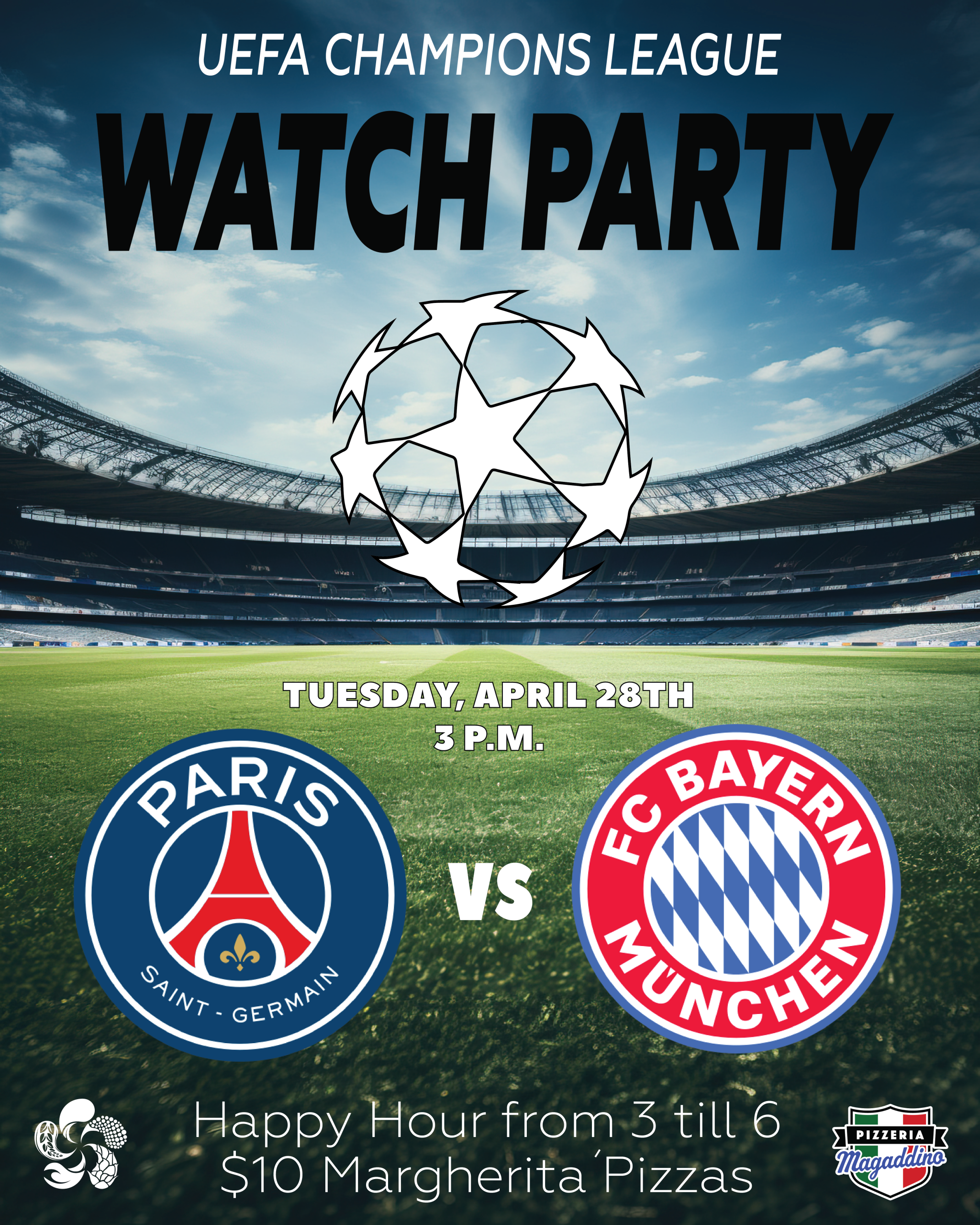 The road to Budapest continues!! Join us in the taproom for a UEFA Champions League matchup. Tuesday, April 28 @ 3 p.m, Paris St. Germain vs. Bayern München Happy Hour...