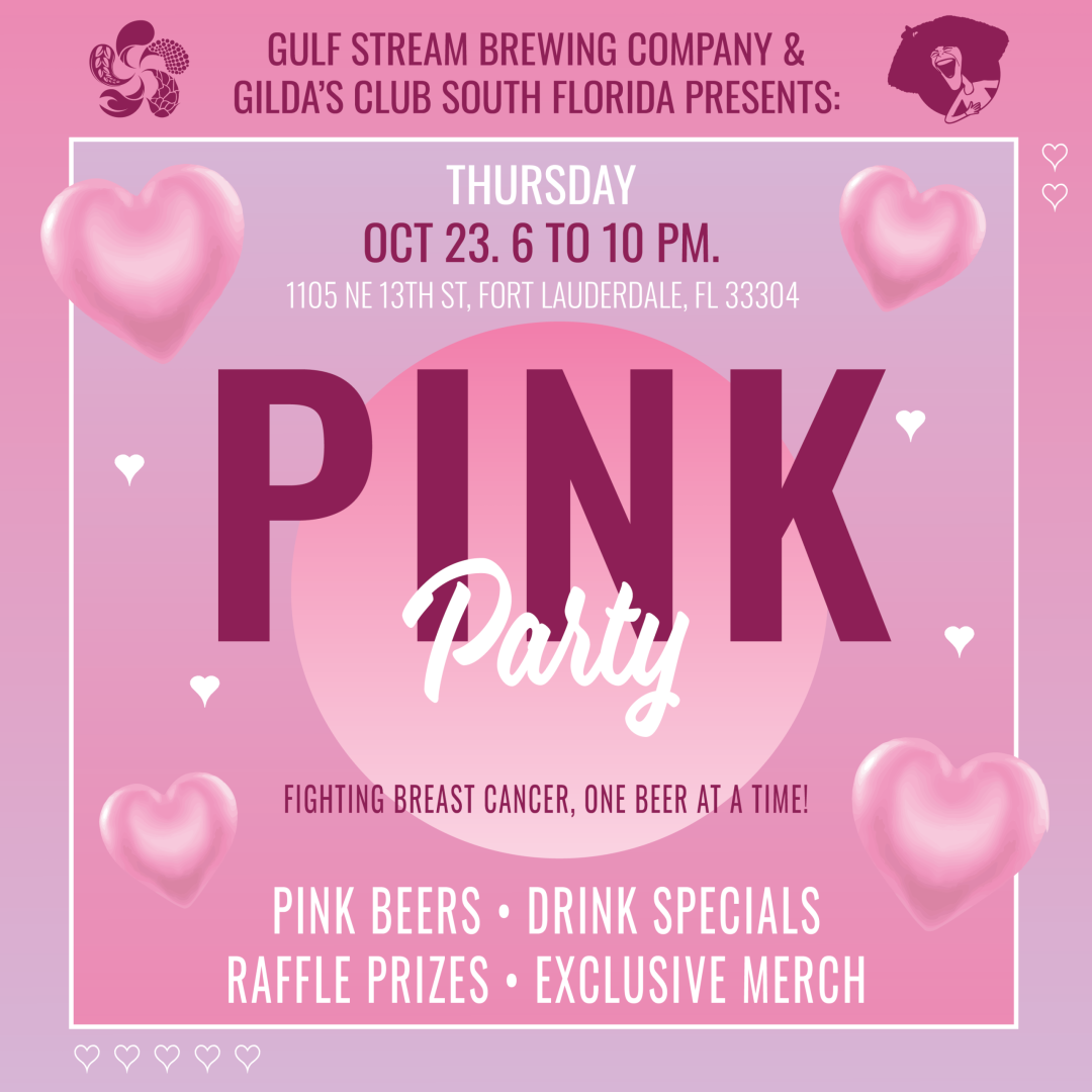 Join us for our Gilda's Club Pink Party, a breast cancer awareness fundraiser benefiting Gilda’s Club South Florida. Order a pink beer at the bar (with 10% of sales donated... |